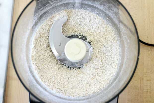 Añadir la avena a un procesador de alimentos y pulse hasta que la avena es finamente picada. (como en la foto)