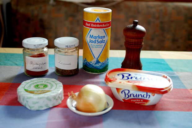 colmado de 3 cucharadas de queso crema (utiliza una variedad de ají picante pero cualquier queso crema hará el trabajo - también se puede utilizar crema agria, su obatzer sólo puede ser un poco más suave)