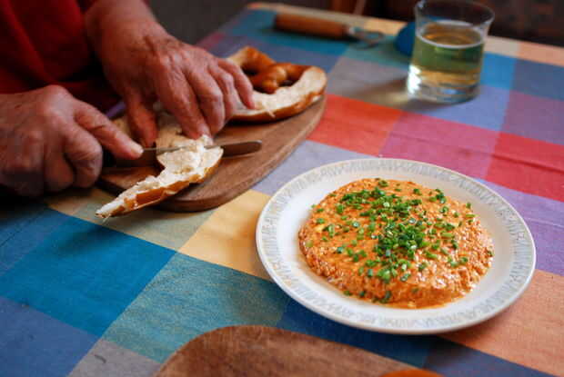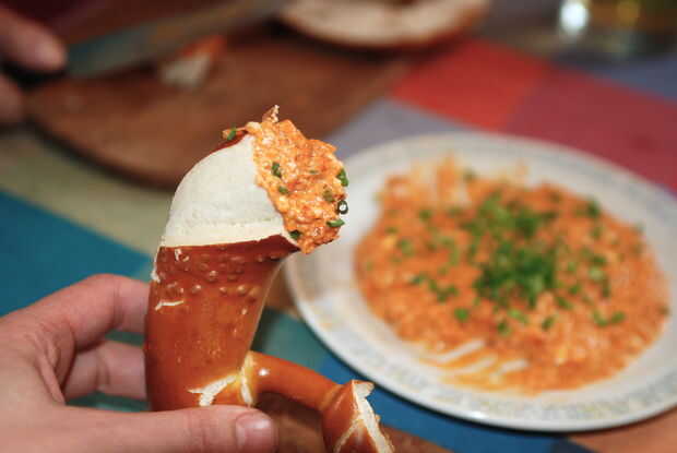 Me gusta Obatzda más una o dos horas después de que es molido juntos, creo que los sabores desarrollan aún mejor después de algún tiempo descanso. Pero se puede consumir enseguida, así. (Obatzda sabe mejor el día que se hace, al día siguiente los sabores son incluso más avanzados - que está todavía muy bien para mi abuela, pero quizás no para todos)