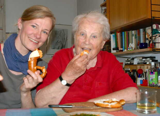 En la tercera foto se puede ver mi abuela y yo disfrutando de Obatzda con unos pretzels frescos ;)
