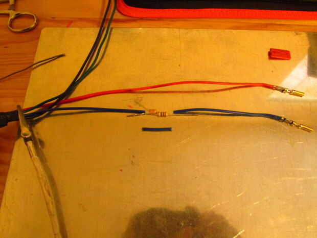 IMPORTANTE!!!! La resistencia tiene que ser en el lado del conector del sensor y el condensador tiene que ser en el lado del coche del corte.