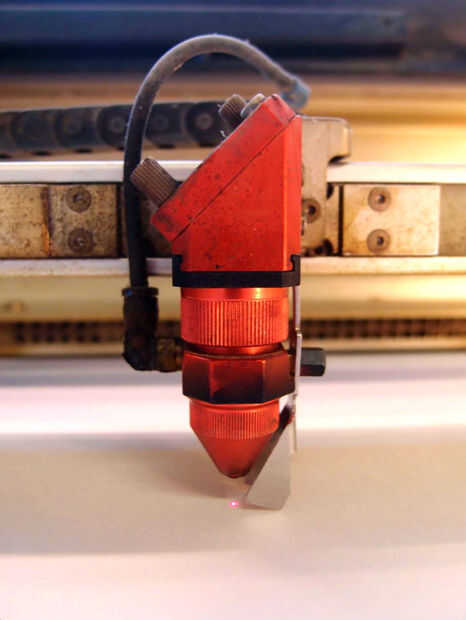 Divertirse un poco configurar varios ajustes del corte láser. Desea un pedazo de chapa en el cortador (apoyándolo en una mesa), luego juega con los diferentes cortes utilizando cualquier software de Vector prefiere--momento en el que puede que desee utilizar un patrón simplificado de corte más pequeño (para la eficiencia - no como lo que hice - vea arriba). Cuando la configuración de corte es en un punto donde está grabado casi completamente aunque el material, hasta el punto donde se siente como va a desmoronarse en cualquier momento - entonces usted está listo.