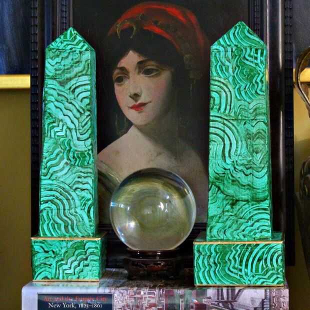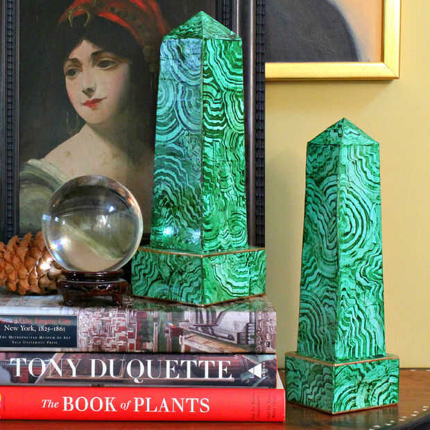 Reciclar cartón y periódico para hacer obeliscos Malaquita imitación para su hogar.