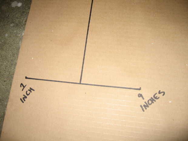 En la base de la plantilla haga una marca de 1 pulgada desde el borde y 9 pulgadas desde el borde.