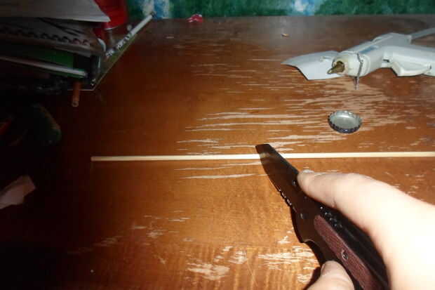 Corte el pincho en la mitad con la herramienta de corte. Si con un cuchillo cortar la mitad entonces la grieta en la mitad. Lo general es un corte limpio. No corte el palito si esté a la altura perfecta.
