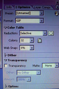Para los colores, disminución de la cantidad a 32 (ver imagen). Si está marcada la casilla de transparencia, desactívela. La razón de ello es que el archivo tiene que ser lo suficientemente pequeño como para fin de aceptarla como un icono.