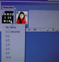 En la paleta animación, haga clic en debajo del cuadro 1, donde dice, "Sin demora". En el menú emergente, elija una hora (alrededor de 1 segundo es generalmente una buena opción: jugar con él).
