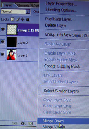 Haga clic derecho en la capa de texto otra vez. Seleccione "Combinar hacia abajo".