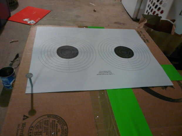 después de semanas buscando en la web, tuve que hacer mi propia solución a lo que es más probable un problema infrecuente.Problema: Cómo hacer una Diana con dardos de pie que puede ser utilizado como un blanco de pistola de airsoft.Otro problema: her