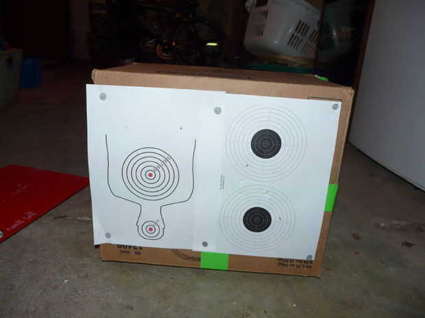 después de semanas buscando en la web, tuve que hacer mi propia solución a lo que es más probable un problema infrecuente.Problema: Cómo hacer una Diana con dardos de pie que puede ser utilizado como un blanco de pistola de airsoft.Otro problema: her