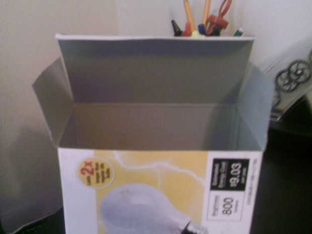 La parte superior de la caja y rellenar con el papel.  Asegúrese de que no se bombea demasiado.  Puede añadir unos trozos rasgados de papel en caso de que la caja no es lo suficientemente completa.  También puede grabar las tapaderas en con cinta adhesiva porque cinta invisible no funciona así.