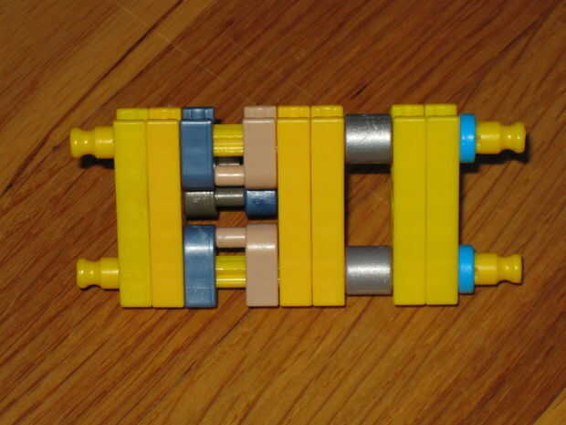 Hola chicos. Este mi primer instructable. Se trata de un objetivo de KVG hice. Si desea instrucciones de uso, vaya al paso 1. O si quieres construir en las fotos, vaya por delante.Paso 1: La Base Piece cont.-4 barras-gris-2 barras-verde-4 x conectore