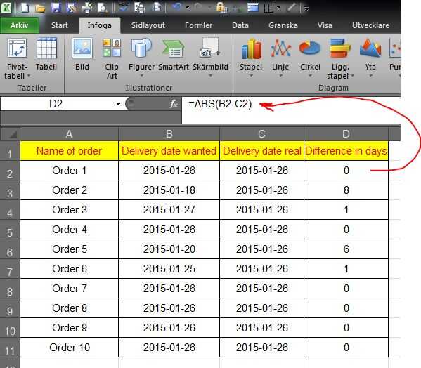 Necesitamos para que este gráfico trabajar con la diferencia de tiempo (o lo que quieras Mostrar) que en siempre positivo así que utilizo la fórmula absoluta «= ABS()» para que esto suceda.
