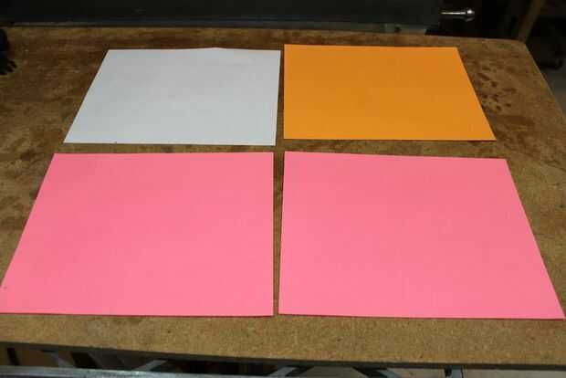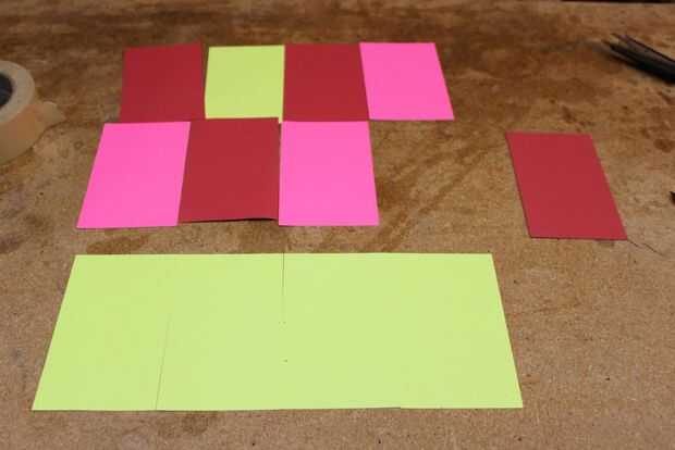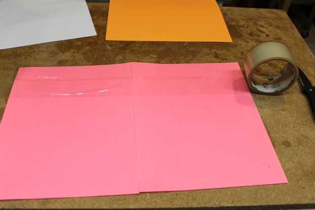 I ponga el papel y las tarjetas en mi banco de trabajo y luego aplicar cinta de embalaje transparente en la parte superior. El papel de la cinta a mi banco y me hacer tantas hojas a la vez como tengo espacio. Después de aplicar cinta a la superficie del papel. El se cortan las piezas con cinta cualquier exceso es doble sobre y pegado a la espalda.