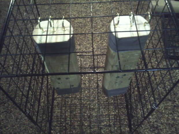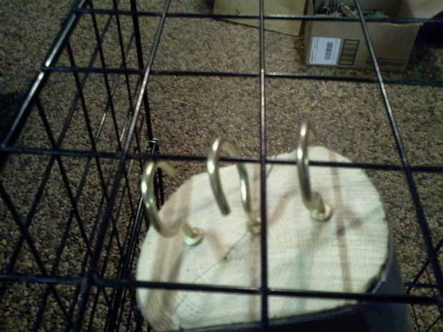 Colgar el danglies modo está centrados de adelante hacia atrás. Si los tienes muy cerca al frente o la espalda, es probables que caiga que cuando les disparas el marco. Sugiero que se mantenga una cantidad incluso de espacio alrededor de los lados si es posible. Estas cosa realmente swing cuando les chocas y no desea que ellos rompen su marco agradable, o uno al otro. No necesita estaca hacia abajo, pero no duele. Asegúrese de que tiene una buena parada de espalda detrás de su objetivo o sus balas podrían ir a lugares que no quieras.
