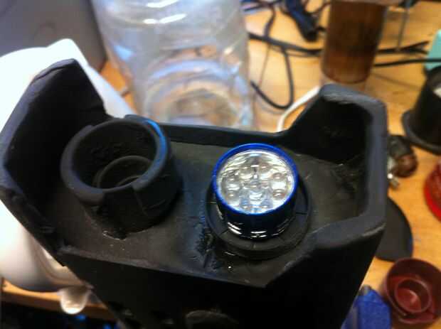 Usando la base de un eje CD, luego pegué la porción de la lente del LED, (después de cableado) hacia abajo.