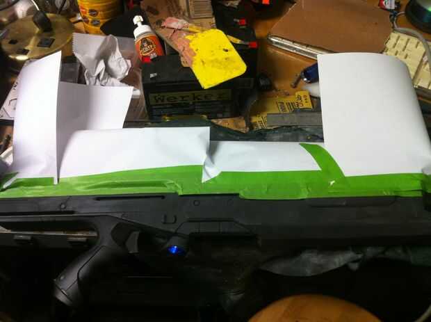 OK, Nerf tiene algunas grandes líneas para su pintura a la máscara. Siguieron las líneas y pintado el negro primero, deje seco entonces enmascarados fuera de la Grey.
