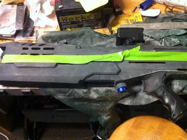 Así que usted puede haber notado, había pintado gris primero, luego rocía el primer Nerf negro entero.