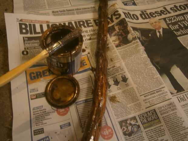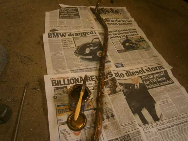 Lo hice mío era una capa de barniz antiguo pino y luego algunos pintura multiuso negra pero puede usar lo que quieras.