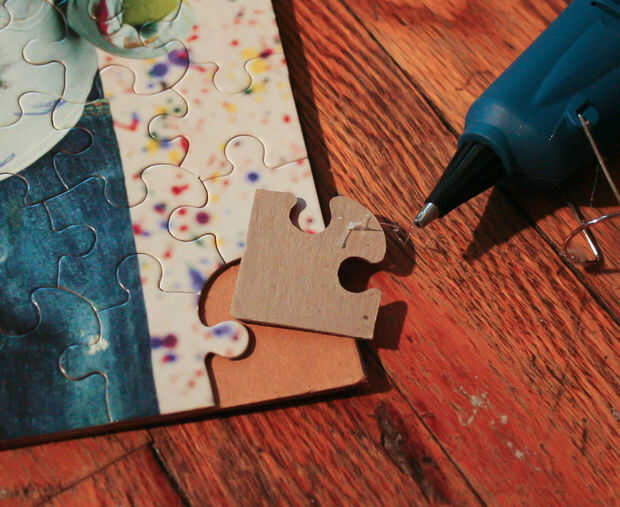 Ahora, desea transferir cuidadosamente el puzzle a tu cartulina. Si eres capaz de llevar a tu cartulina sin dejar caer los pedazos, sería realmente impresionante! Una vez hecho esto, coge tu pistola de pegamento caliente y pegamento hacia abajo de sus piezas. Probablemente me resulta más fácil pegar las piezas exterior (como en la forma de un borde). Sin embargo, no se preocupe por ninguna de las piezas restantes. La razón de es una vez que utilice su Mod Podge sobre el rompecabezas, a secar como un agente de la vinculación, para que el resto de las piezas estará permanecer juntos en un solo lugar.