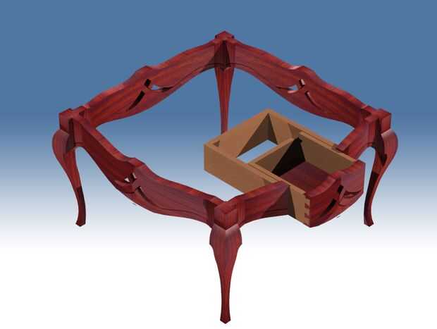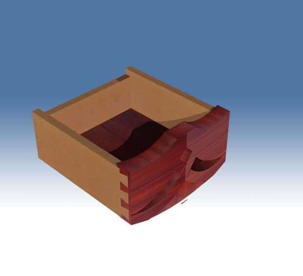 El cajón se hace con colas de Milano cubiertas (a mano). el cajón está en una caja que se conecta con LAMELLO a las reglas de la estructura. los dientes no duro y divertido para hacer. sólo es difícil porque las reglas son dobladas para que el frente del cajón no es recto, así de colas de Milano abisal. el cajón se abre con un sistema de puss y tire.