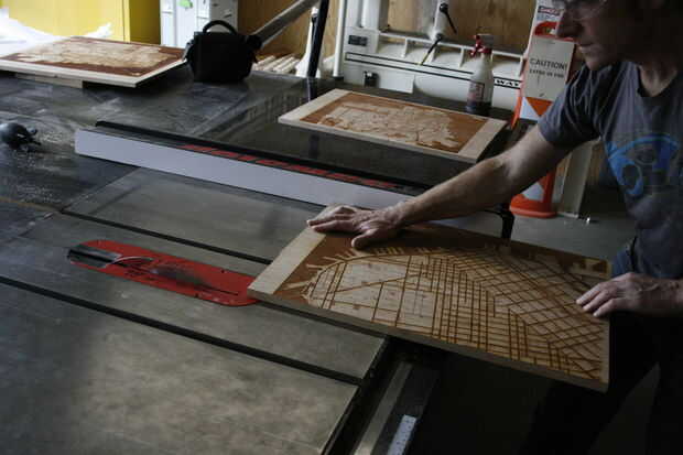 El primero de muchos momentos de la verdad, hice los cortes finales en los mapas recién grabado a láser. Con mucho cuidado y muy lentamente. No quiero recortar el material extra.