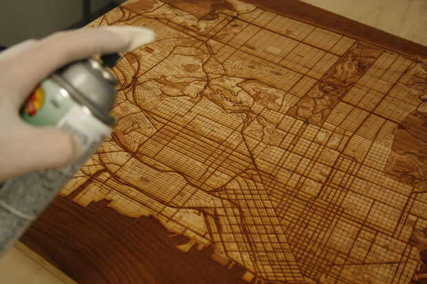 Apliqué una capa delgada de barniz brillante para resaltar el color de la madera y sobre todo para proteger la madera. Es una capa extremadamente delgada.