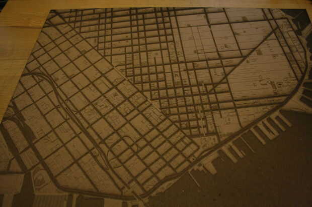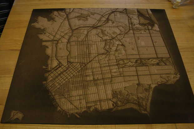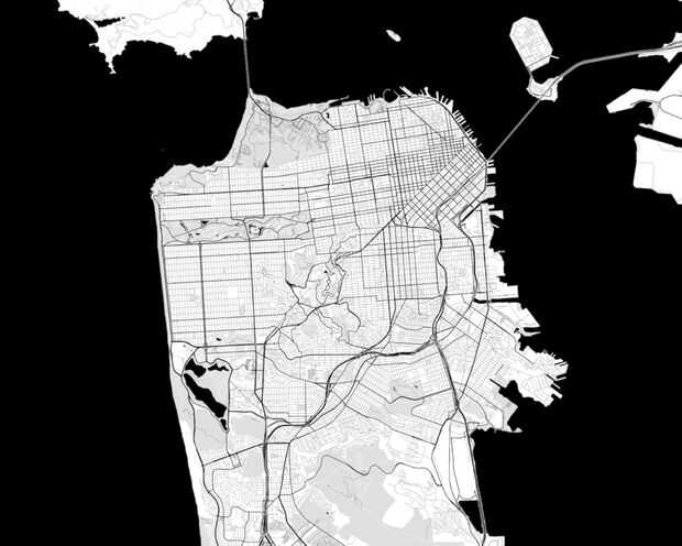 Como parte de la comunidad de código creativo, tuve la suerte de trabajar con Diseño de estambre. Me dieron un mapa de alta resolución en escala de grises de San Francisco sin nombres de la calle de su mapa de Toner azulejos.