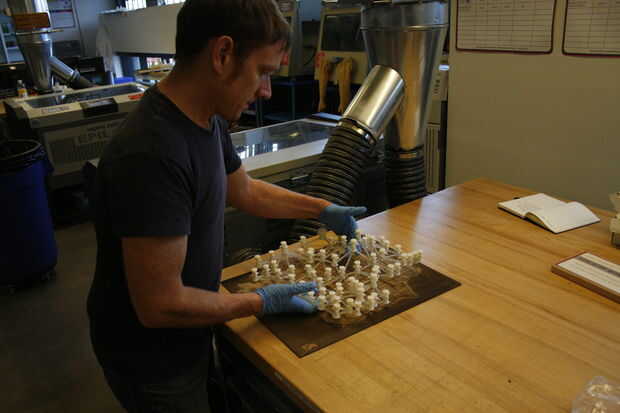 Esta había grabada sobre un cartón como una prueba para la base de la 3D imprime. Coloque cada impresión cuidadosamente por encima de ellos y que la impresión 3D alineada al mapa antes de ir al siguiente paso.
