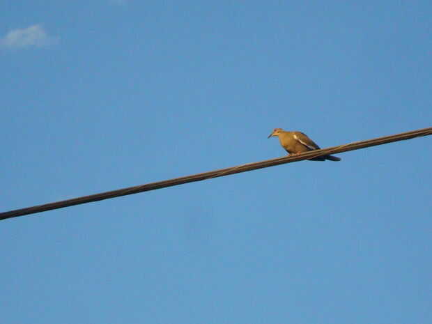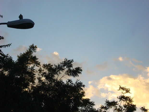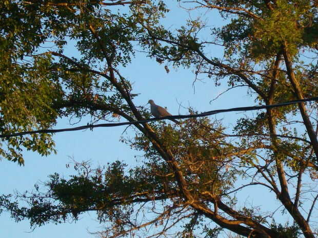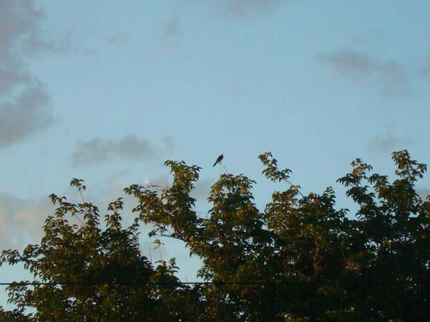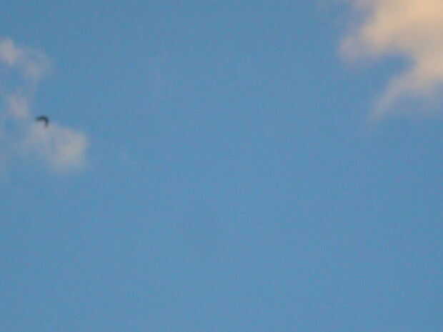 Por la tarde en el 3 º día todavía no capturar una simpática imagen de un pájaro en vuelo. Si te fijas bien en una mota pequeña algo como un pedazo de pimienta que sería un pájaro que intenté conseguir en vuelo. Captura algunas nubes agradables sin embargo. Todas las fotografías que obtuve eran palomas o mirlos. Mirlos son los más divertidos porque puntal mucho y tienen mucha personalidad. Aunque son bastante agresivos.