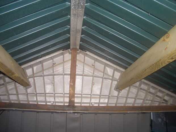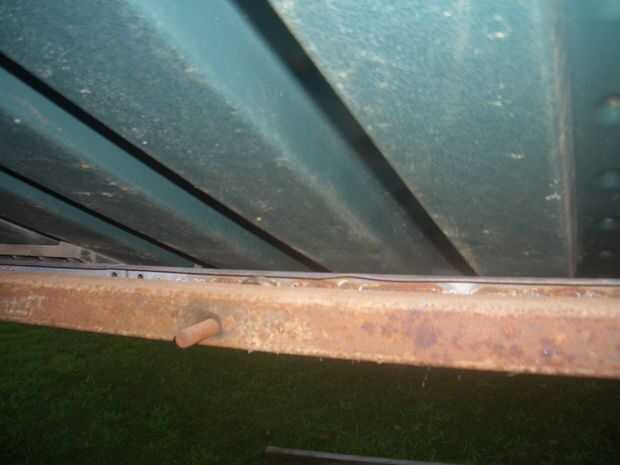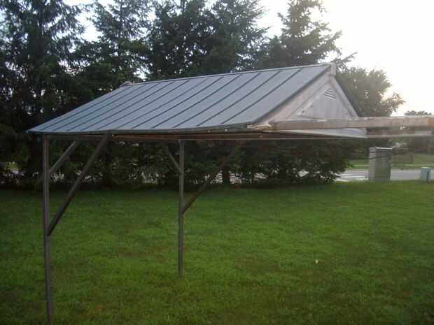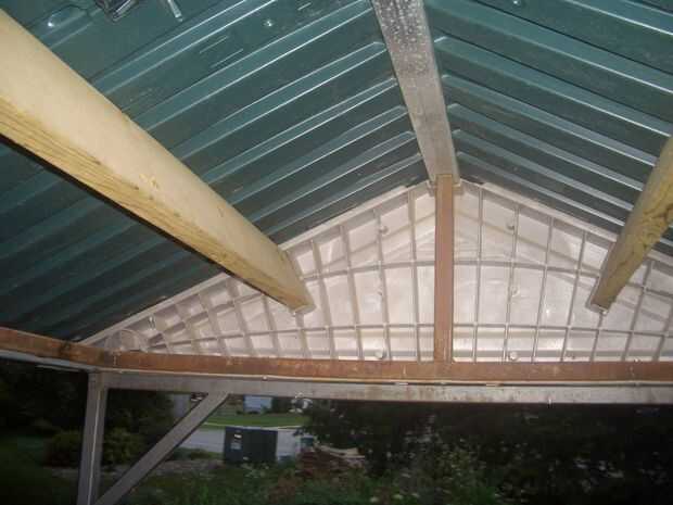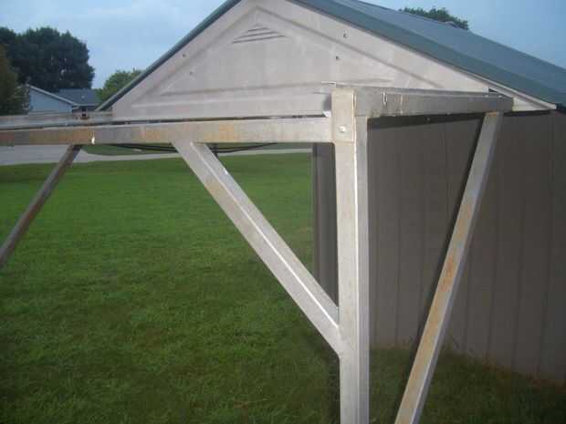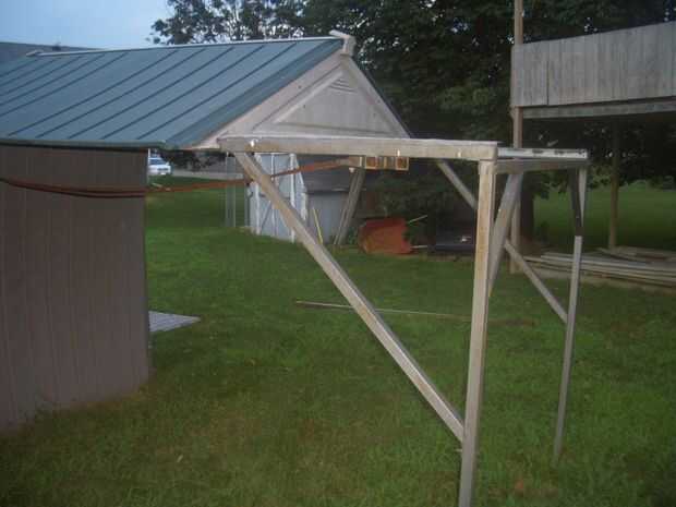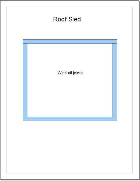 Ahora construya el patín de la techo montaje y midiendo el techo siguiendo las instrucciones del cobertizo. Montar el techo en el suelo y no en la nave sí mismo. Soldadura interior estructura de soporte. También incluí un pedazo corto de apoyo en cada extremo para sostener el centro viga de soporte del techo.
