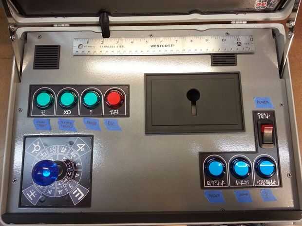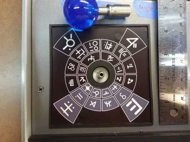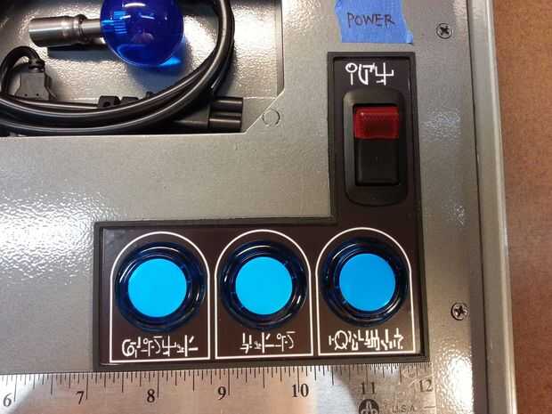Los botones están marcados con símbolos de observadores que fueron descifrados usando a agente Astrid Farnsworth traducir software.
