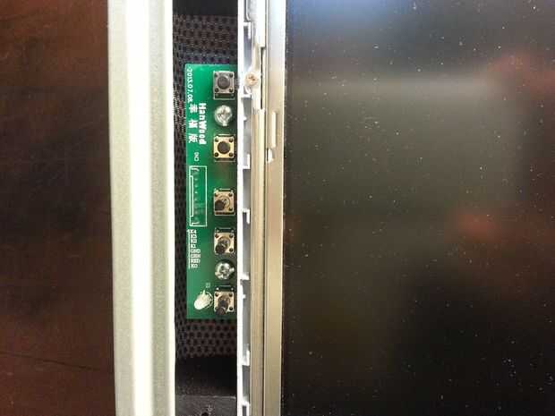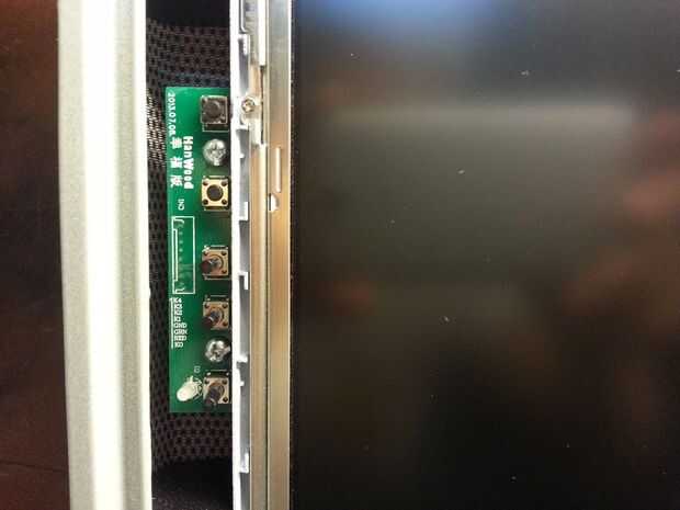 El monitor dispone de tres botones negro pequeñas no marcados en el lado izquierdo, superficie vertical. Determinado de uso, el botón de la parte inferior está el botón de encendido del monitor. Los parte superior dos botones ajustan el volumen.