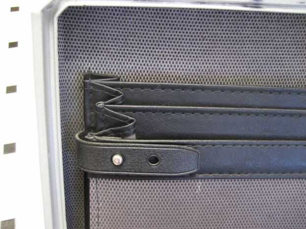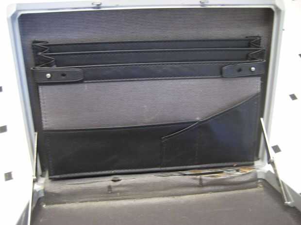Lo primero que hice fue que tire los separadores de carpeta interna de dentro de la tapa del maletín. Esto es bastante fácil ya que los divisores se cosen encendido. Usé un cuchillo tipo exacto y corte cuidadosamente los hilos.