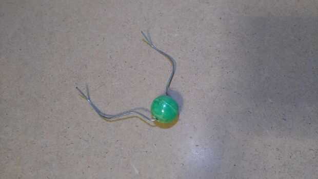 Ahora es el momento para hacer la rueda trasera de apoyo, utilice el clip de papel y grano (imagen 2). Por último, utilizar un super pegamento (o pegamento de pistola caliente) para colocar en la parte inferior del plexiglás.