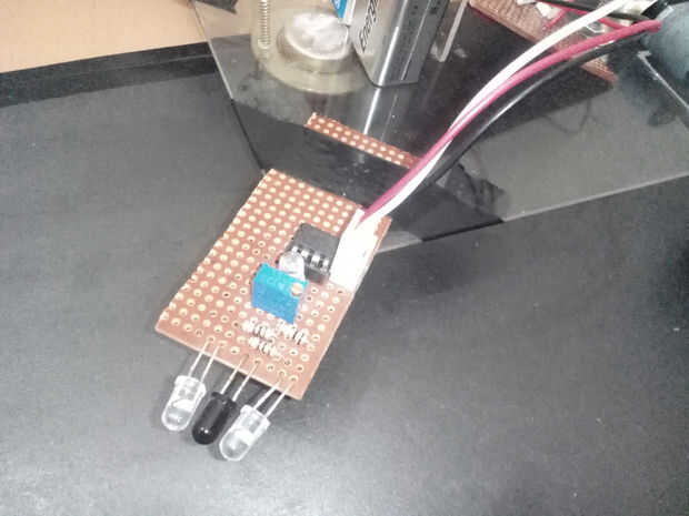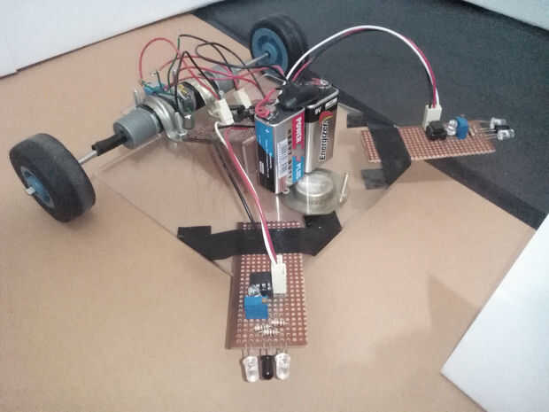 Bien este es un proyecto mayor, hizo en 2014 en el mes de julio o agosto, pensaba compartir con ustedes chicos. Su un obstáculo sencillo evitar el robot que utiliza sensores infrarrojos y funciona sin microcontrolador. Los sensores IR utiliza IC opamp es decir LM358N. Tienes que hacer dos sensores IR y luego conectarlo con el controlador de motor L293D IC que está conectada a los motores.