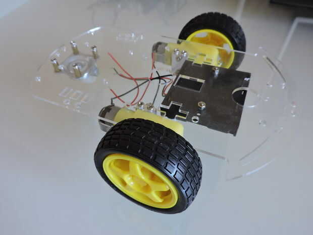 el primer paso y la base de un robot es un chasis. Yo tengo la mía de ebay, y te dejo enlaces para. Si lo prefiere, también usted puede hacer su propia utilizando cartón y servomotores de CC. De cualquier manera, el chasis tiene que incluir un cuerpo, dos motores y a veces incluso un portapilas y un interruptor.