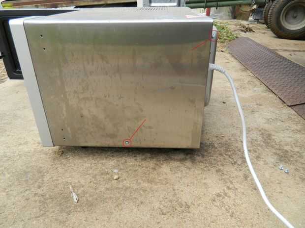 Tenga en cuenta que la mayoría de los casos tornillos son en la parte posterior, pero a veces pueden ser en el lateral e incluso por debajo. Ver los círculos rojos. Como este caso hay que volver a ser utilizados, guarde estos tornillos. Los agujeros adicionales en el lado hacia la parte delantera de la caja para un soporte de pared y, por ahora, pueden ser ignorados.