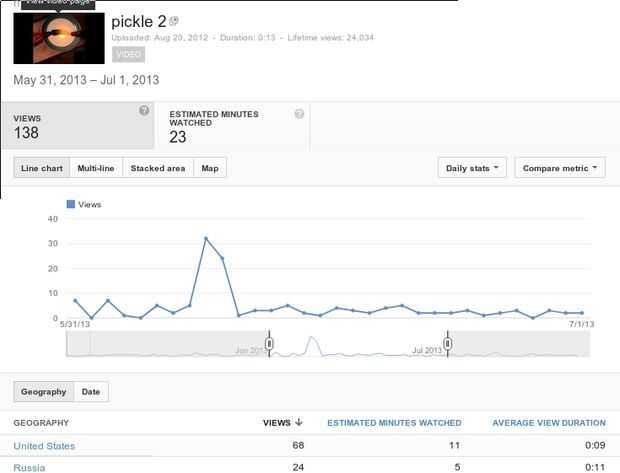 Aquí son las vistas de un video más viejo había incluido en un instructable.  Se puede ver que esto consiguió un topetón en vistas cuando subió el Hula-Hoop instructable.