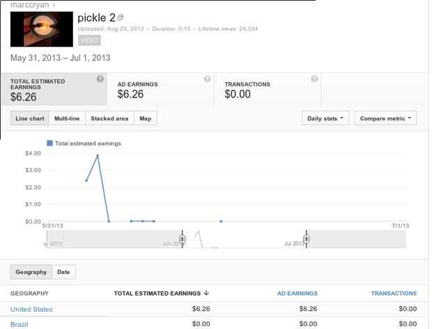 Aquí está lo sorprendente, este video de salmuera de alguna manera obtuvo varios dólares con sólo unas pocas vistas.  Supongo que esto es de personas realmente haciendo clic en el anuncio.