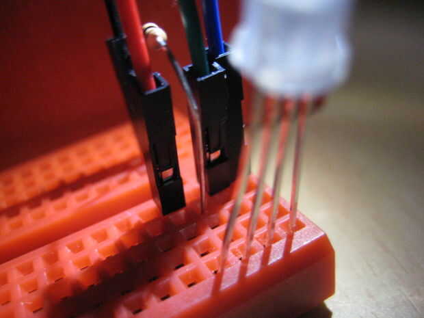 He añadido una resistencia 10kOhm para que puedo atenuar la LED un poco porque sin eso, el LED brilla realmente brillante. Es decir, realmente brillante. Aunque, si no decides poner una resistencia, que está muy bien. Que todavía funciona.
