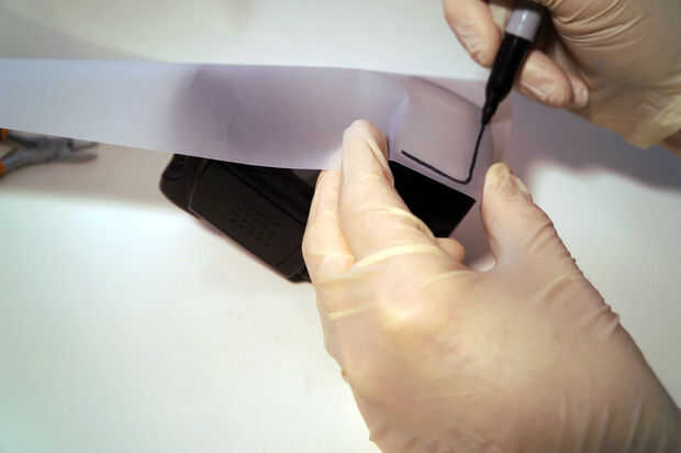 Utilizar un papel y un marcador (después de verificar el marcador no sangra a través del papel) para obtener el contorno.