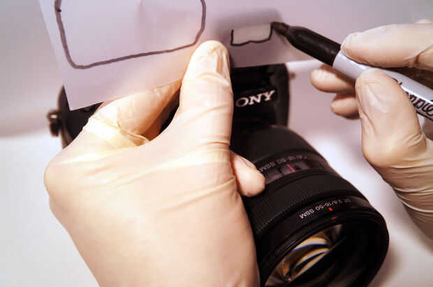 En primer lugar, haga una plantilla de la forma del área frontal de su destellos. Dependiendo de la forma de la flash, puede hacer las plantillas que hay superposición un poco (como lo hago para el flash incorporado de la cámara. Consulte el paso 4.), así que cuando usted la cinta en su lugar, no cubre la intensidad real del flash. O, usted puede hacer más pequeña que el área de la ventana de flash (como lo hago para el flash externo), por lo que puede quedar al ras con la ventana empotrada.