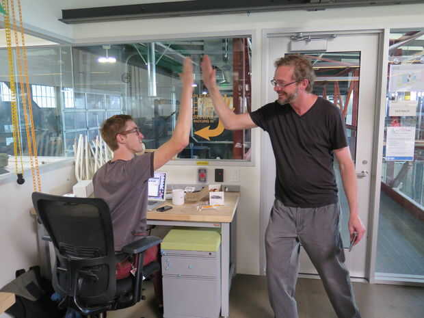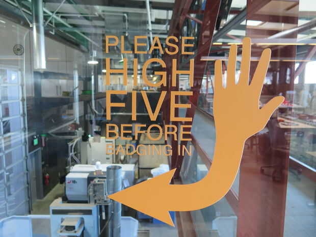 Me mudé a un nuevo escritorio en el muelle 9 y no conseguir suficientes fives altos. Por suerte es una zona de alto tráfico donde todo el mundo va camino a la sala de la impresora 3D. Diseñé un gráfico simple ventana a alta de cinco años fue un éxito inmediato. CINCOS ALTOS TODO EL TIEMPO