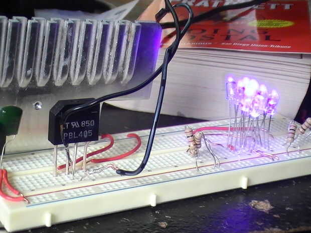 ahora aquí es el razonamiento, bajo uso normal un puente rectificador convierte corriente ac en dc, básicamente es un back y a fluir en un flujo siempre adelante. así que cuando usted conecta un voltaje de dc a él todo lo que el rectificador es es tratarla como una tensión normal y rectificando a los terminales positivo y negativo. problema resuelto!