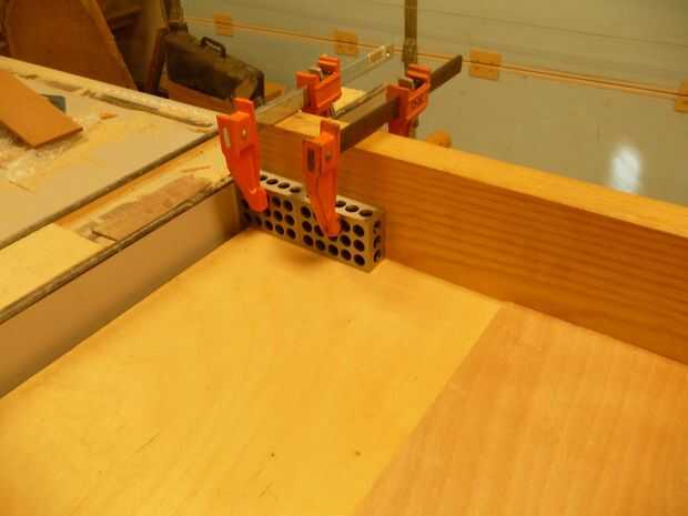 Tengo una valla muy precisa que se tendrá una tolerancia de +/-1/64. Mi trineo corte transversal permite la valla para dentro de 20" de la hoja. Para realizar un corte de 7-3/8", establece la valla en 20-3/8" y usa los bloques para mover en 13". Esto se hace un bloque en lugar de sujeción y moviendo la otra. 3, 6, 9, 11 y 13, el bloque es ahora 13" lejos de la valla y 7-3/8" de la hoja.