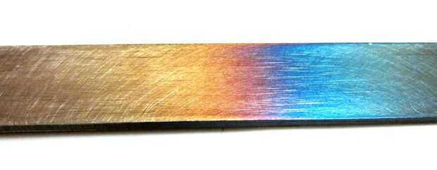 Si ha sido recién molido acero, lijado o pulido, se formará una capa de óxido en su superficie cuando se calienta. Medida que se aumenta la temperatura del acero, el espesor del óxido de hierro también aumentará. Aunque óxido de hierro no es normalmente transparente, estas capas delgadas permiten que la luz pase a través, que reflejan las superficies superior e inferior de la capa. Esto causa un fenómeno llamado interferencia de película fina, que produce colores en la superficie. Como el espesor de esta capa aumenta con la temperatura, hace que los colores cambiar de un amarillo muy claro, marrón, luego púrpura, luego azul. Estos colores aparecen temperaturas muy precisos y proporcionan al herrero con un calibre muy preciso para medir la temperatura.