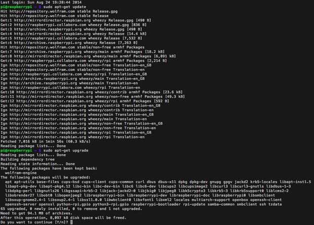 Cada vez que agrega nuevas bibliotecas a tu Pi de frambuesa, que desea actualizar y actualizar sus paquetes de software. Empezaremos con este paso.