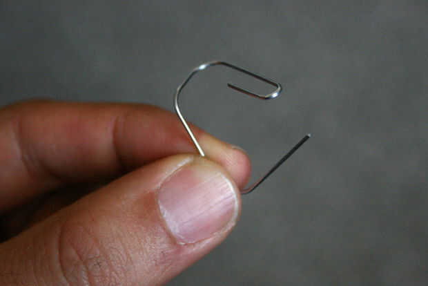 Doble sus clips de modo que aproximadamente coinciden con la imagen de abajo. Esto no es una ciencia exacta y clips son baratos así que relajarse y a doblar.