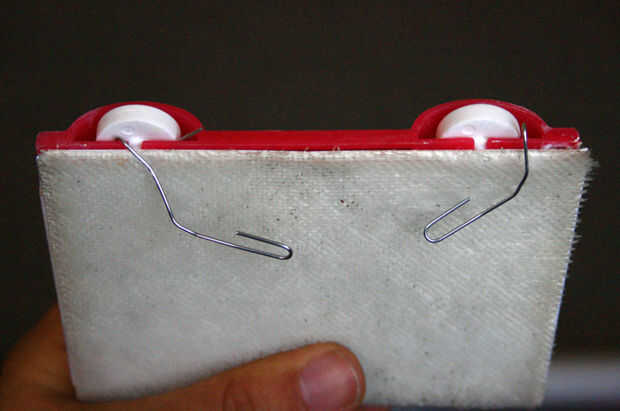 También se puede utilizar una pieza más larga del alambre que serpentea a través de los rodillos. Hice que durante un tiempo y luego cuando he perdido mientras que fuera de una vez cambiado a clips fácilmente disponibles y se han pegado con ellos.
